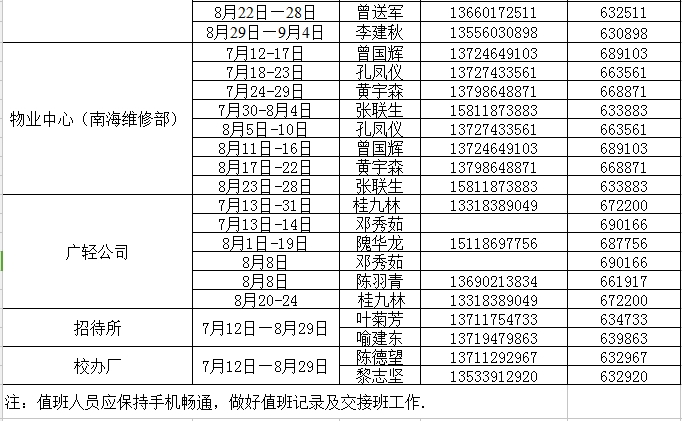2016年后勤产业集团暑假值班表